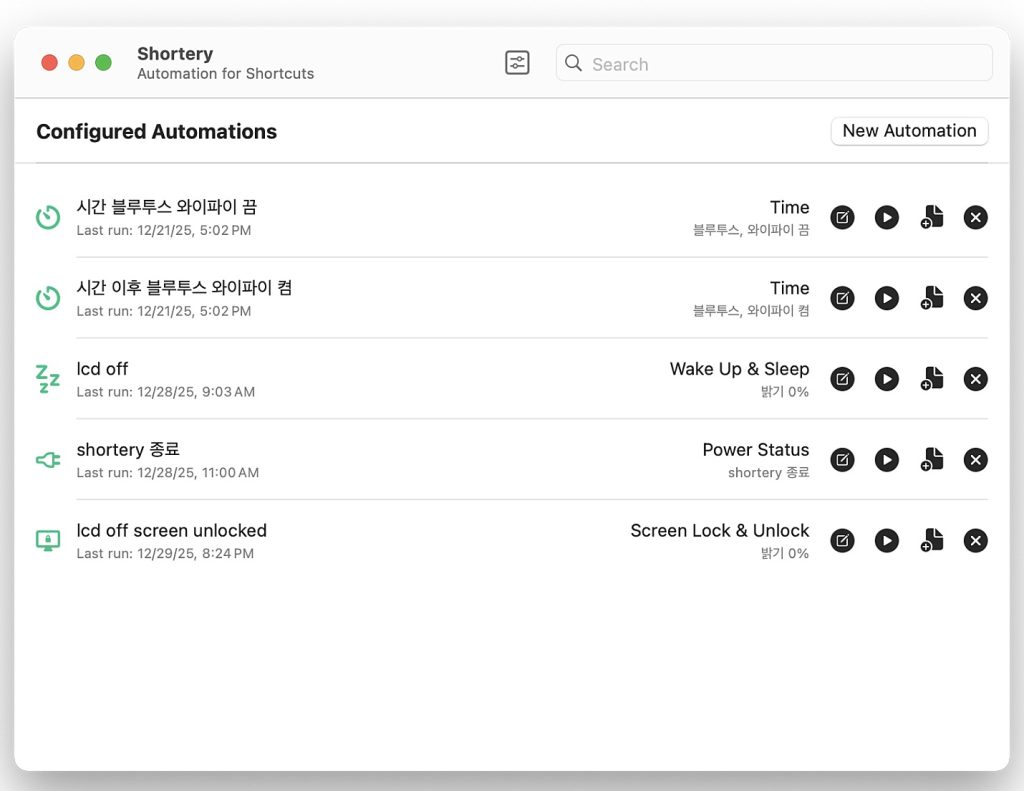 위와 같은 다양한 조건으로 자동화하여 단축어 사용이 가능합니다.